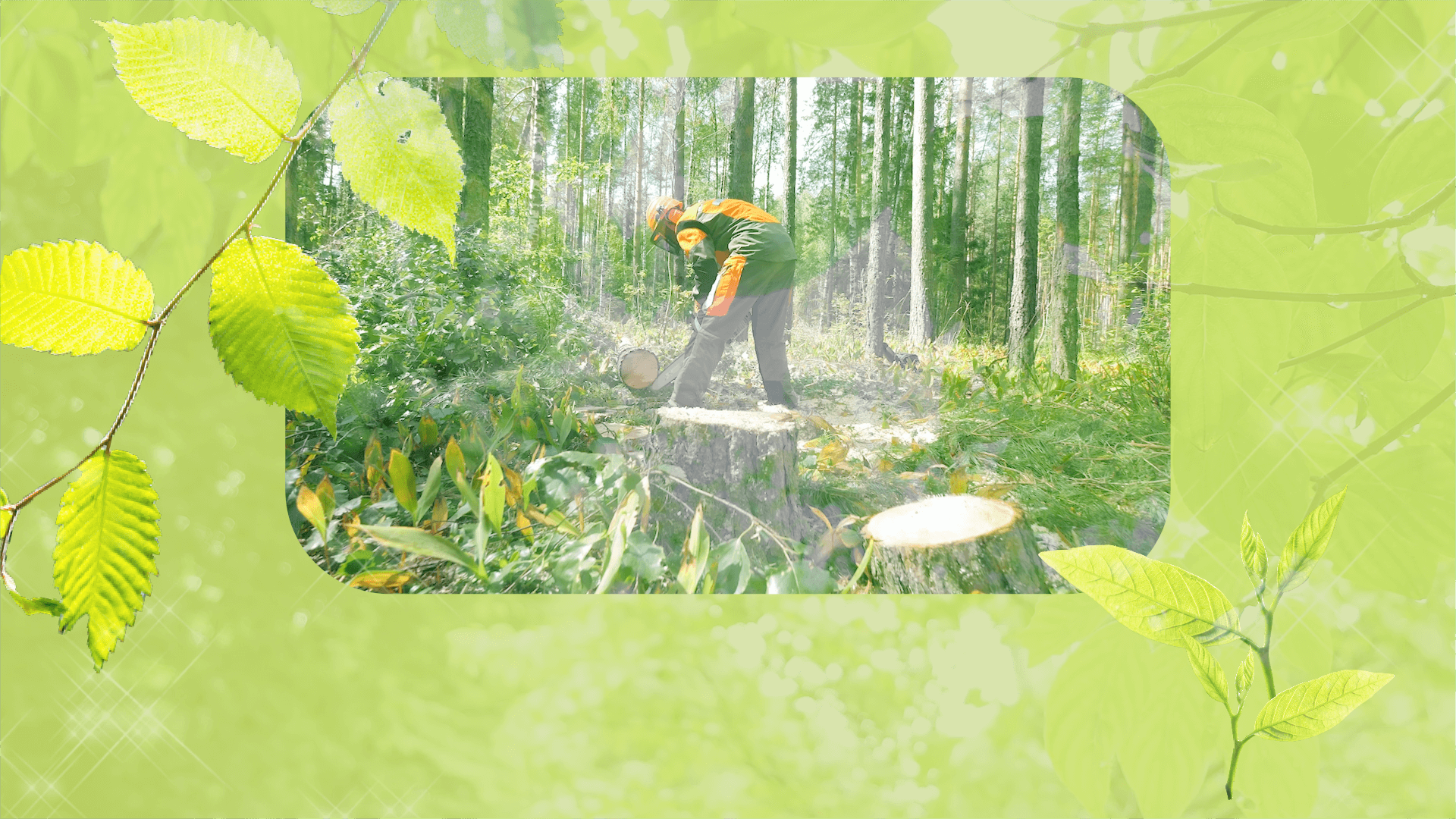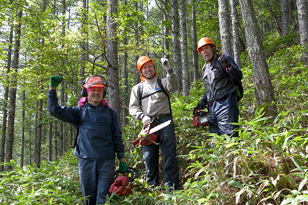 林業の仕事は1年を通して行われます。 地ごしらえ→植栽→下刈り・つる切り→枝打ち・除伐→間伐と、1年間で季節ごとの作業を行います。